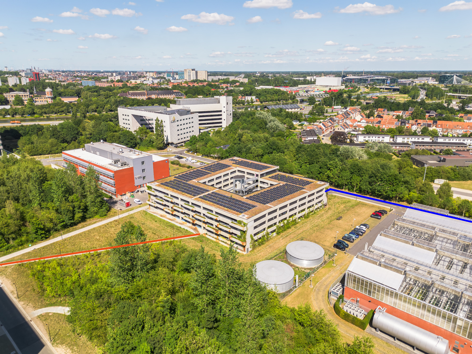 Coming from the exit of the E17, after about 4 km in the direction of "Gent N60" you will encounter a large roundabout with an oblong (oval) shape. The roundabout starts just after the 4th traffic lights. Follow the roundabout and after 180 meters take a right turn onto the "Technologiepark". You are now on the campus.